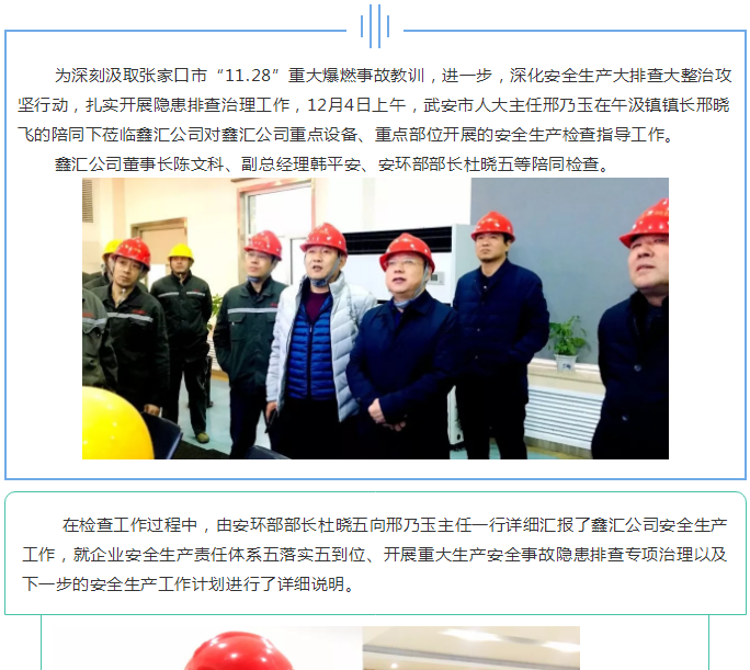 武安市人大主任邢乃玉蒞臨鑫匯公司進行安全檢查指導工作