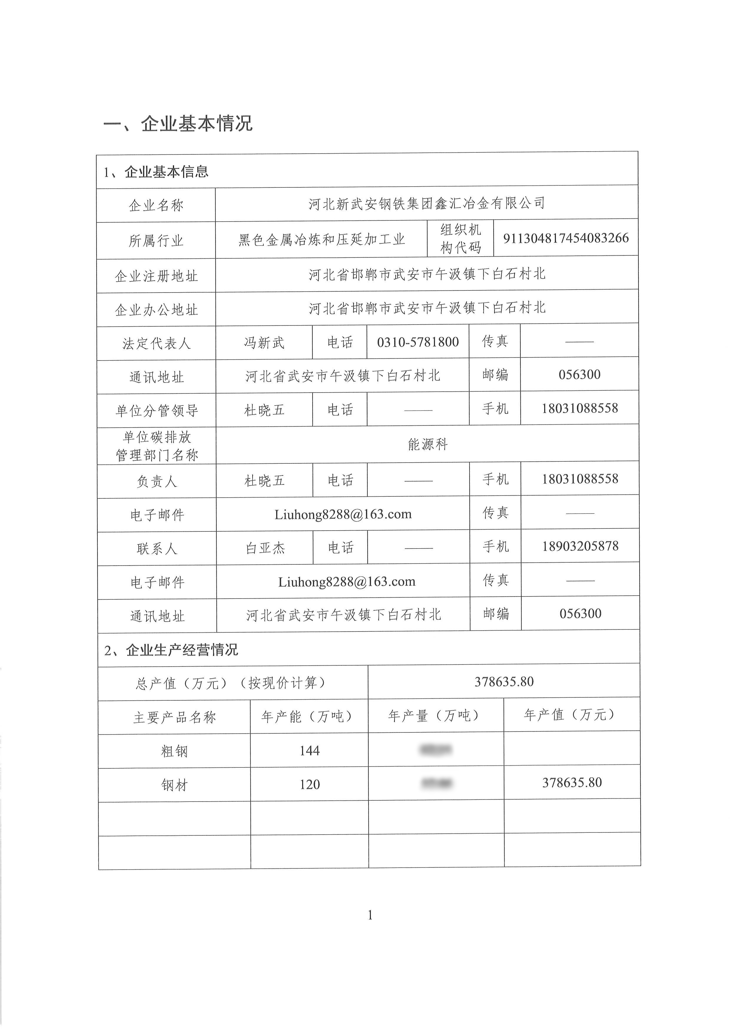 2023年河北新武安鋼鐵集團(tuán)鑫匯冶金有限公司碳排放報告