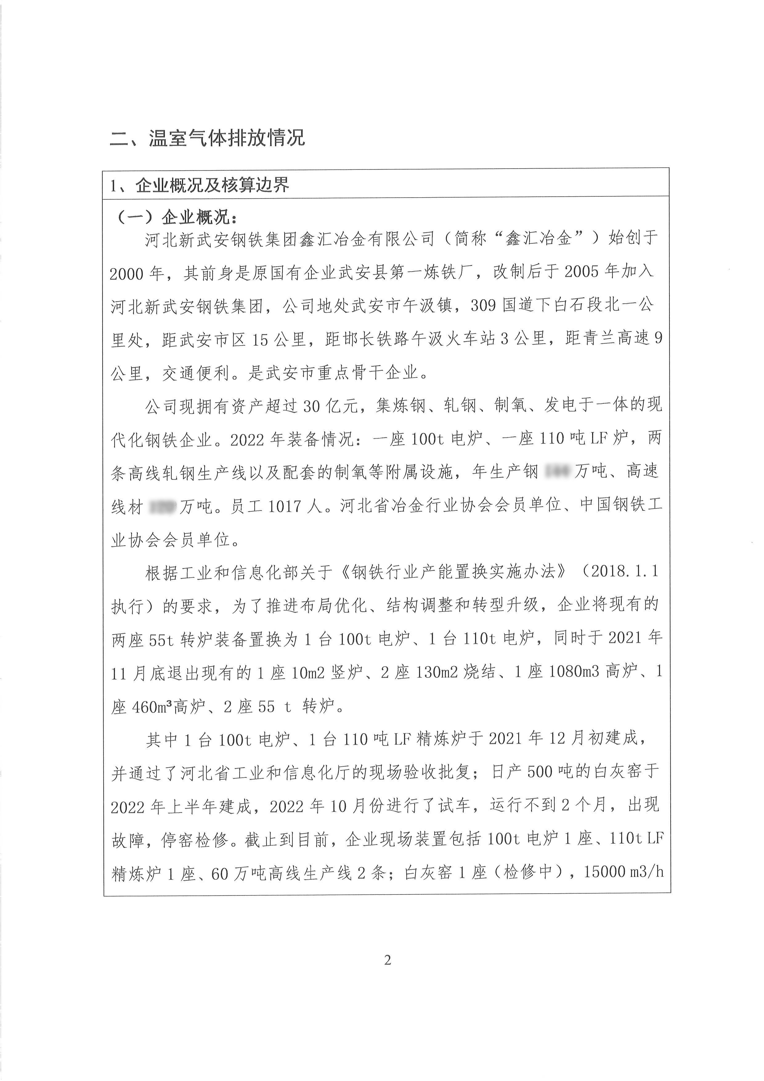 2022年河北新武安鋼鐵集團(tuán)鑫匯冶金有限公司碳排放報告