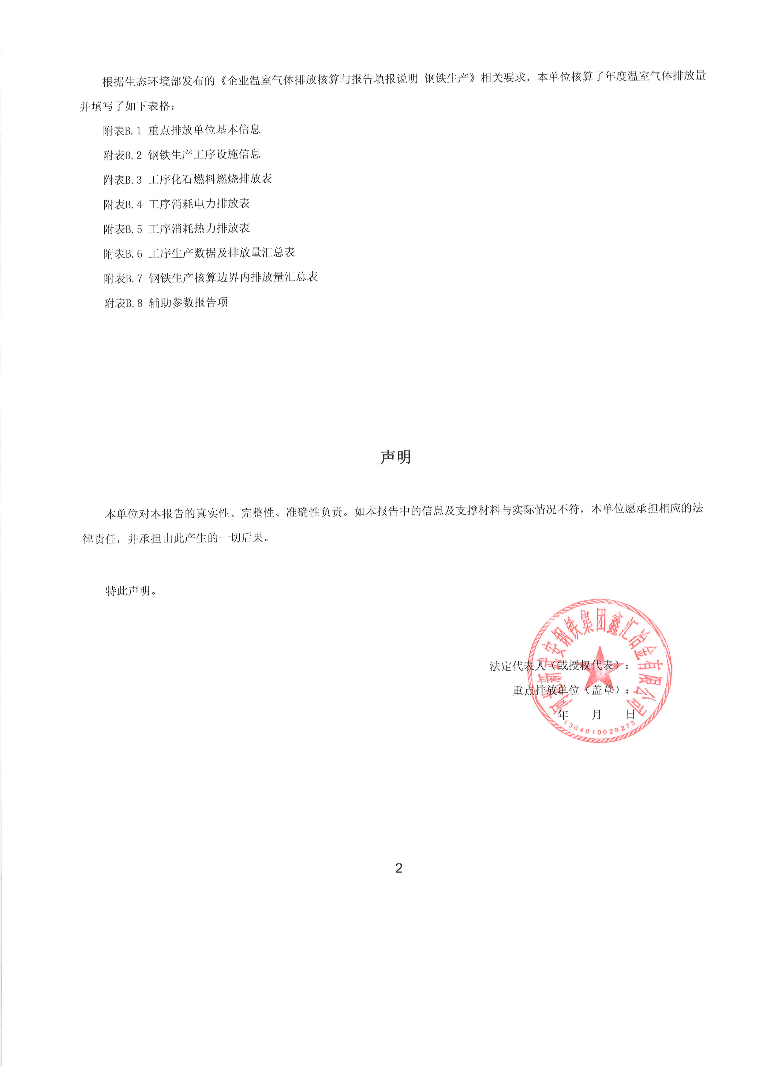 2022年河北新武安鋼鐵集團鑫匯冶金有限公司碳排放報告