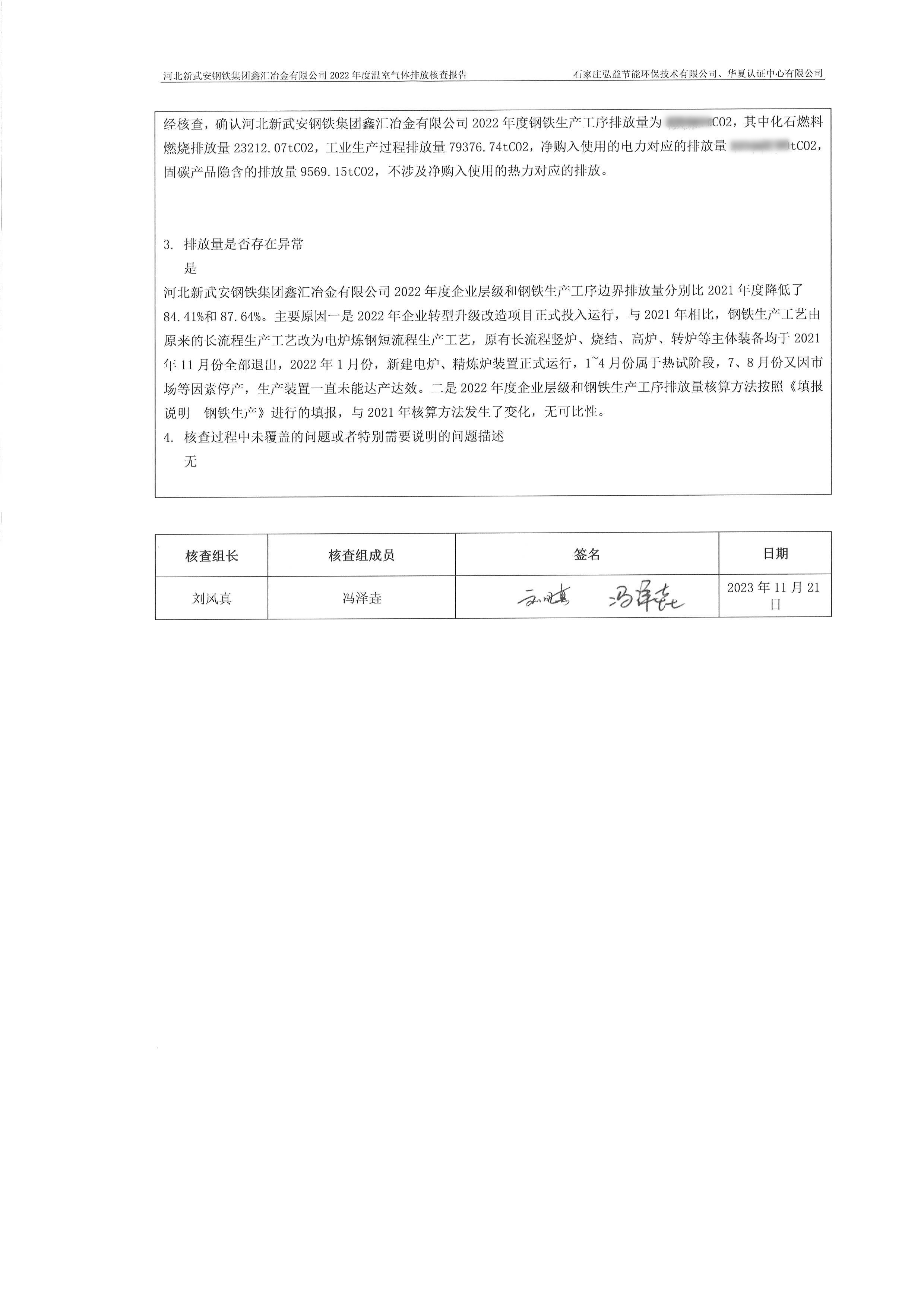 2021年河北新武安鋼鐵集團鑫匯冶金有限公司碳排放核查報告