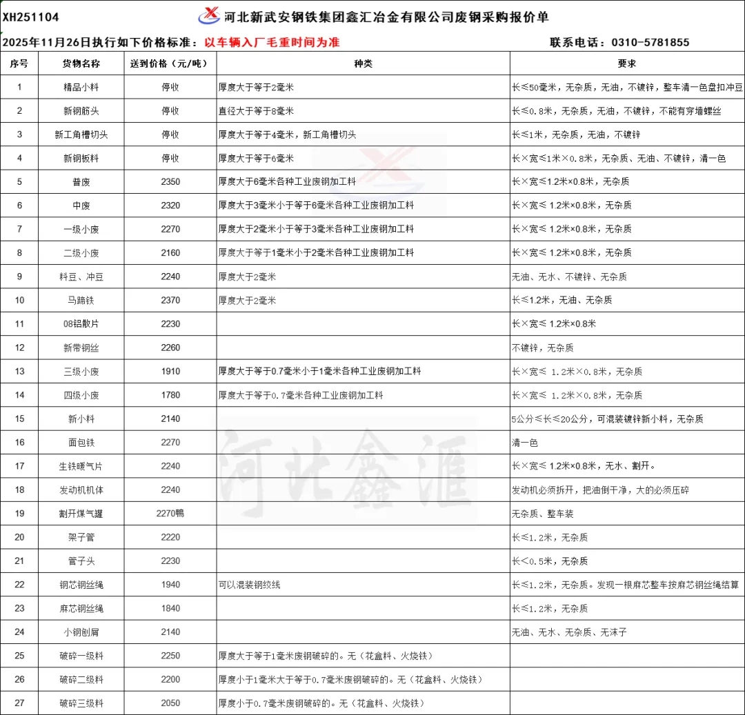 鑫匯廢鋼采購(gòu)報(bào)價(jià)